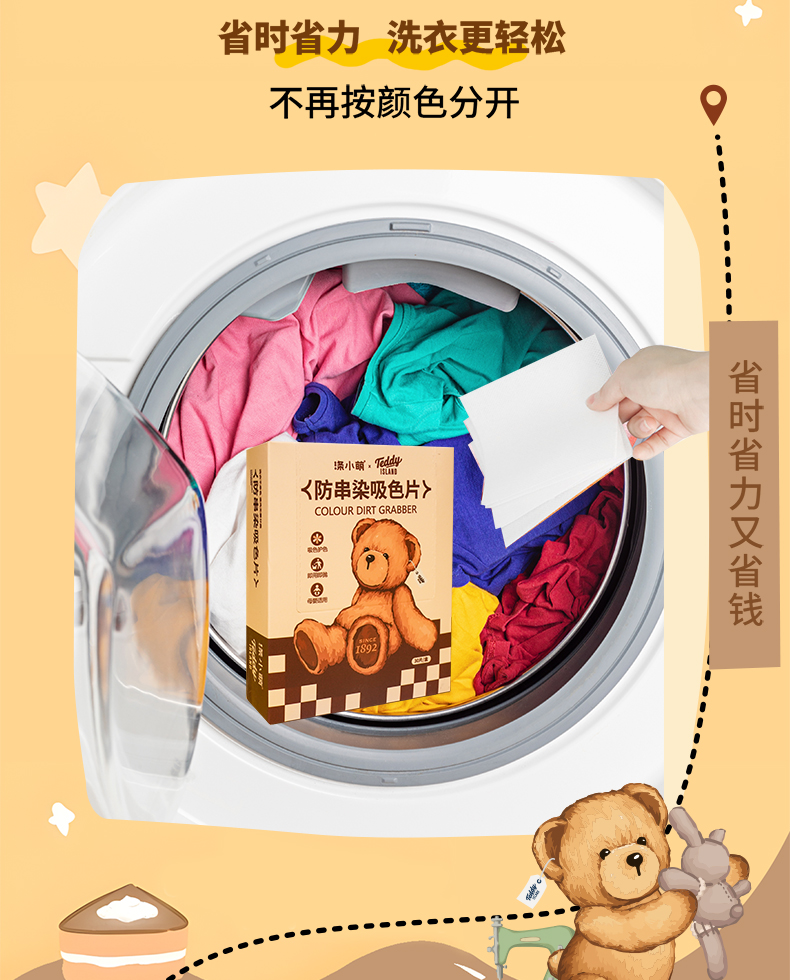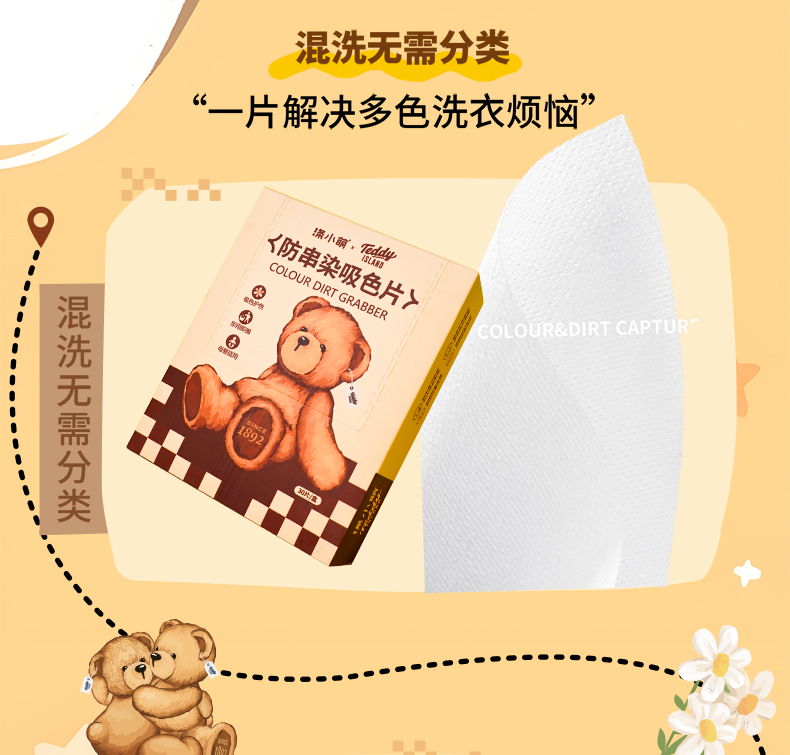 涤小萌&Teddy ISLAND防串染吸色片30片装多色混洗无忧保护衣物色彩