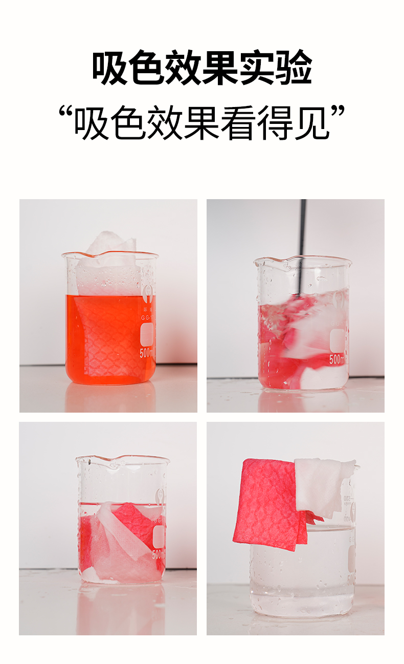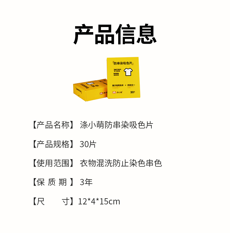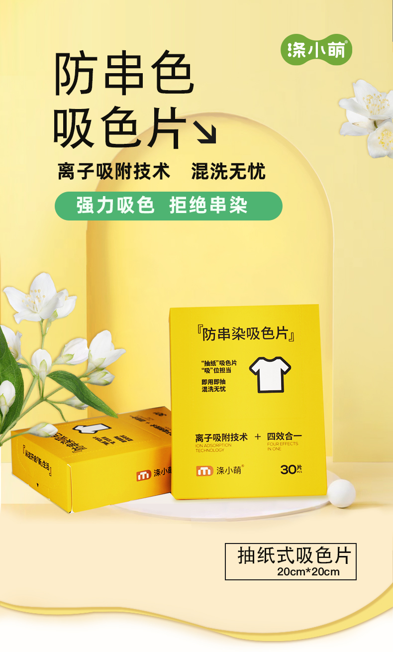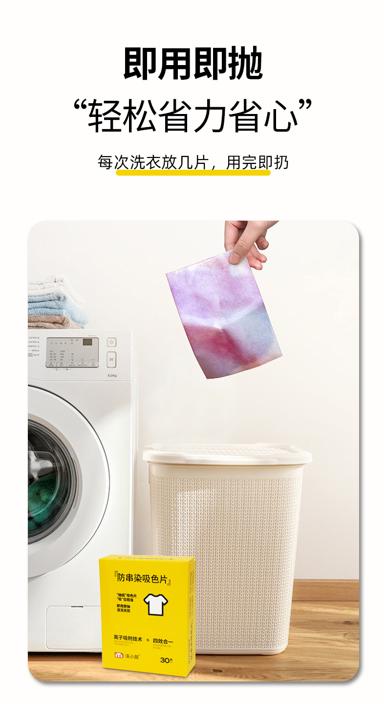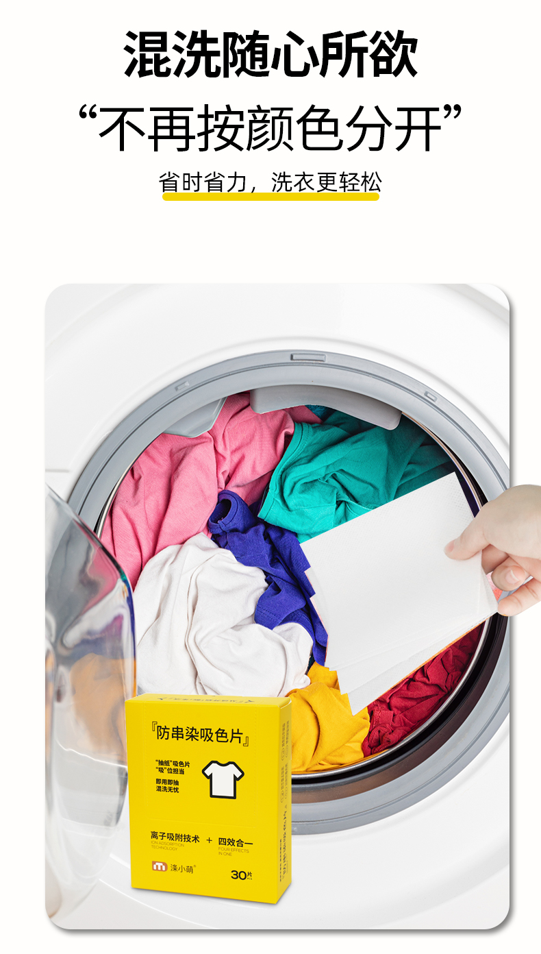 吸附量大:涤小萌吸收片采用80g加厚布料,可以吸附大量的色素,能够满足不同衣物数量和不同褪色程度的洗衣需求。
