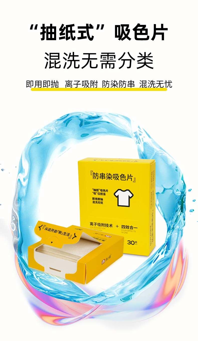 多色混洗无忧:能有效吸附水中的游离色素,防止衣物在混洗时相互染色。例如,在同时清洗白色衬衫和深色牛仔裤时,吸色片可以将牛仔裤掉出的颜色吸附住,避免白色衬衫被染色,让不同颜色的衣物混洗成为可能,节省洗衣时间和精力。
