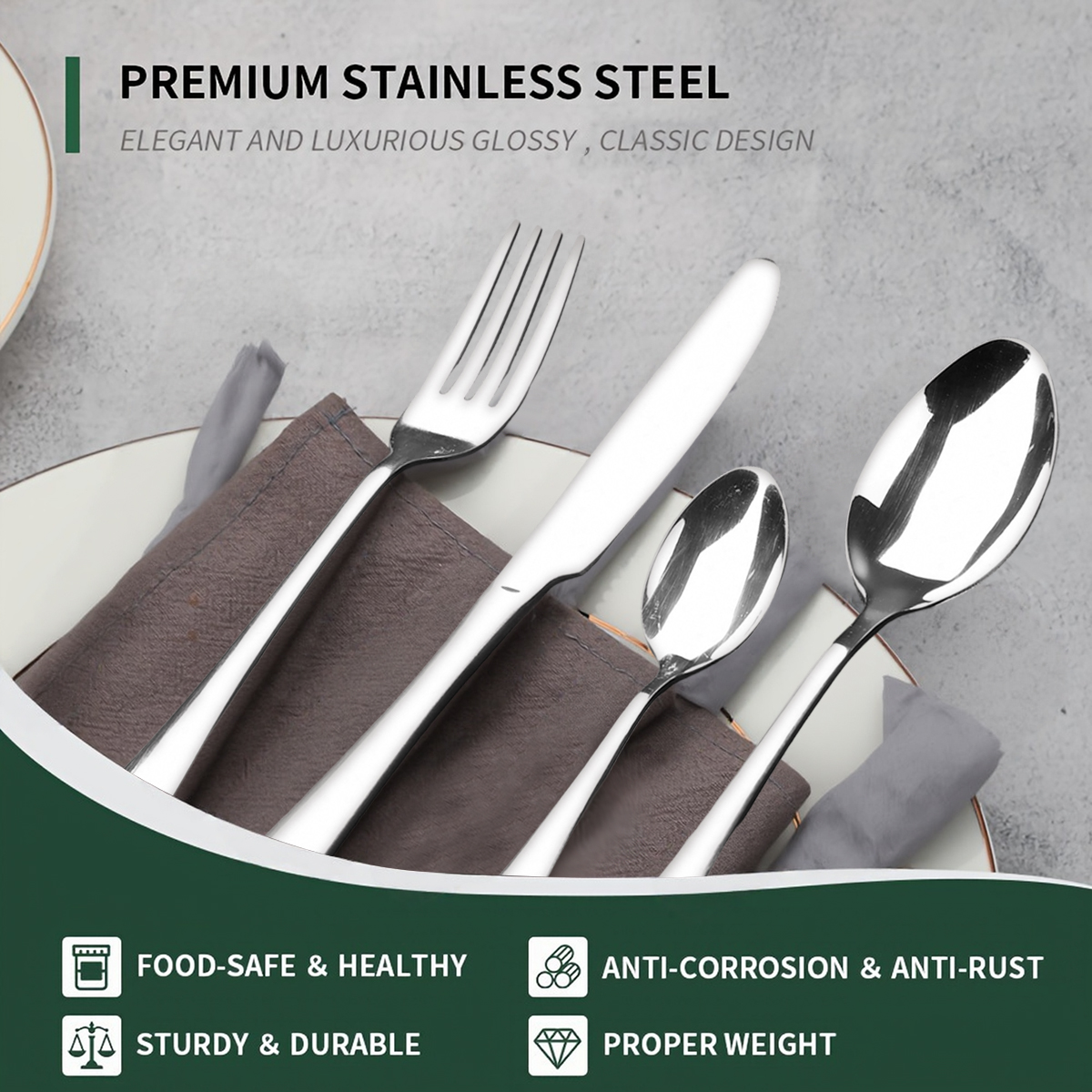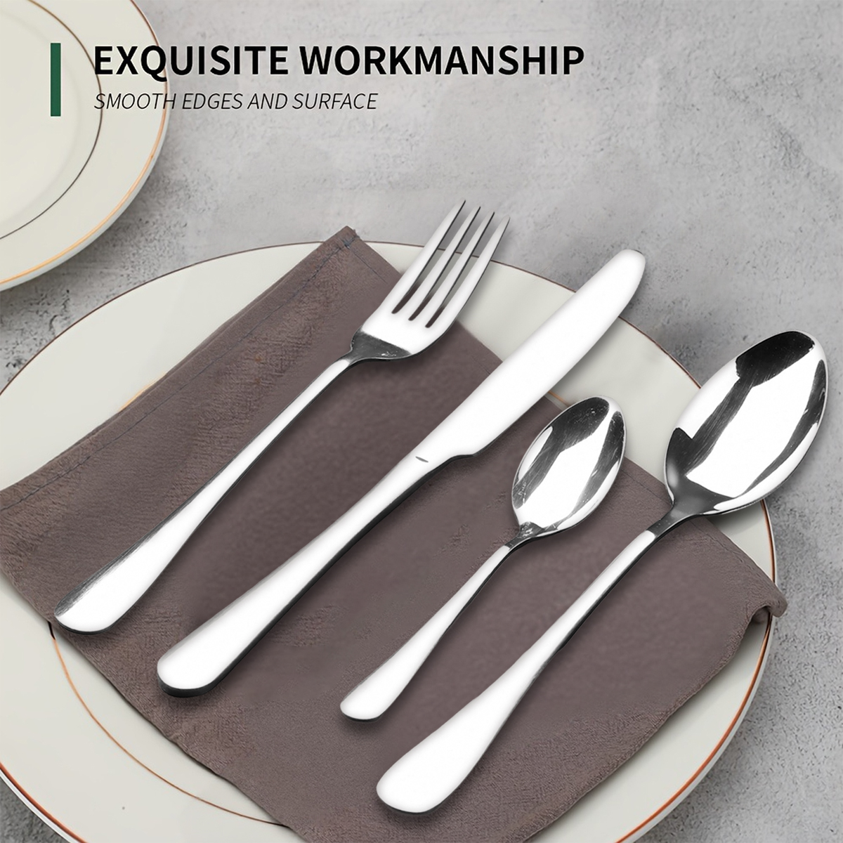 精选优质不锈钢打造,食品级材质安全健康,无惧酸碱腐蚀,日常使用汤汁酱料不易残留染色。经精密抛光与一体成型工艺处理,表面光滑如镜,耐磨抗摔,经久耐用;圆润光滑的边角设计,避免使用时刮伤,呵护家人安全;科学人体工学手柄,贴合掌心弧度,握感舒适,拿取自如。餐后清洁也格外省心,油污一冲即净,可直接放入洗碗机,省时省力。无论是早餐时的精致摆盘,还是晚餐时的温馨共享,这套餐具都能为每一餐赋予品质感,让平凡日子也充满仪式浪漫。​