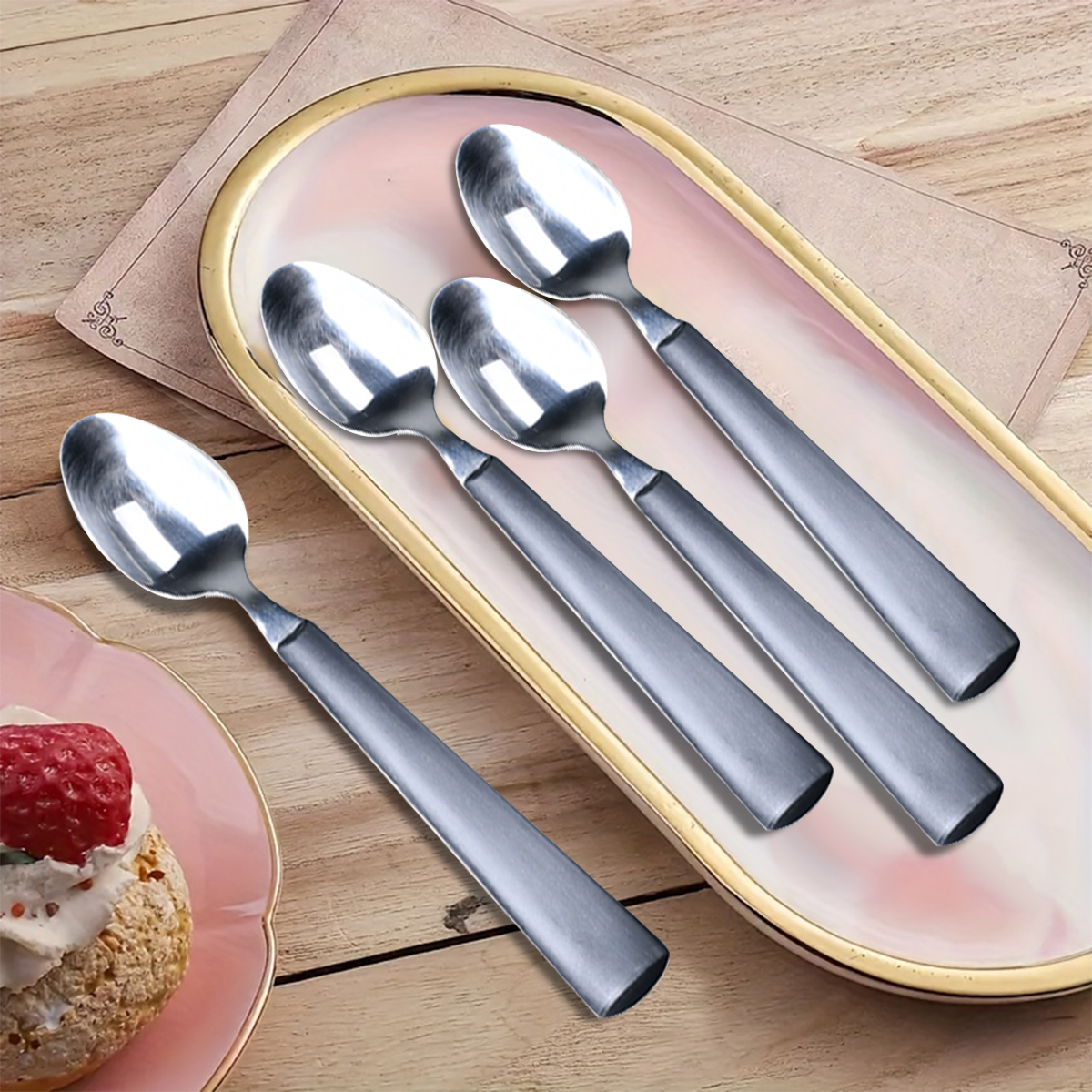精选优质不锈钢打造,食品级材质安全健康,无惧酸碱腐蚀,日常使用汤汁酱料不易残留染色。经精密抛光与一体成型工艺处理,表面光滑如镜,耐磨抗摔,经久耐用;圆润光滑的边角设计,避免使用时刮伤,呵护家人安全;科学人体工学手柄,贴合掌心弧度,握感舒适,拿取自如。餐后清洁也格外省心,油污一冲即净,可直接放入洗碗机,省时省力。无论是早餐时的精致摆盘,还是晚餐时的温馨共享,这套餐具都能为每一餐赋予品质感,让平凡日子也充满仪式浪漫。