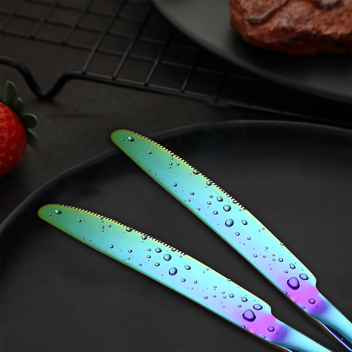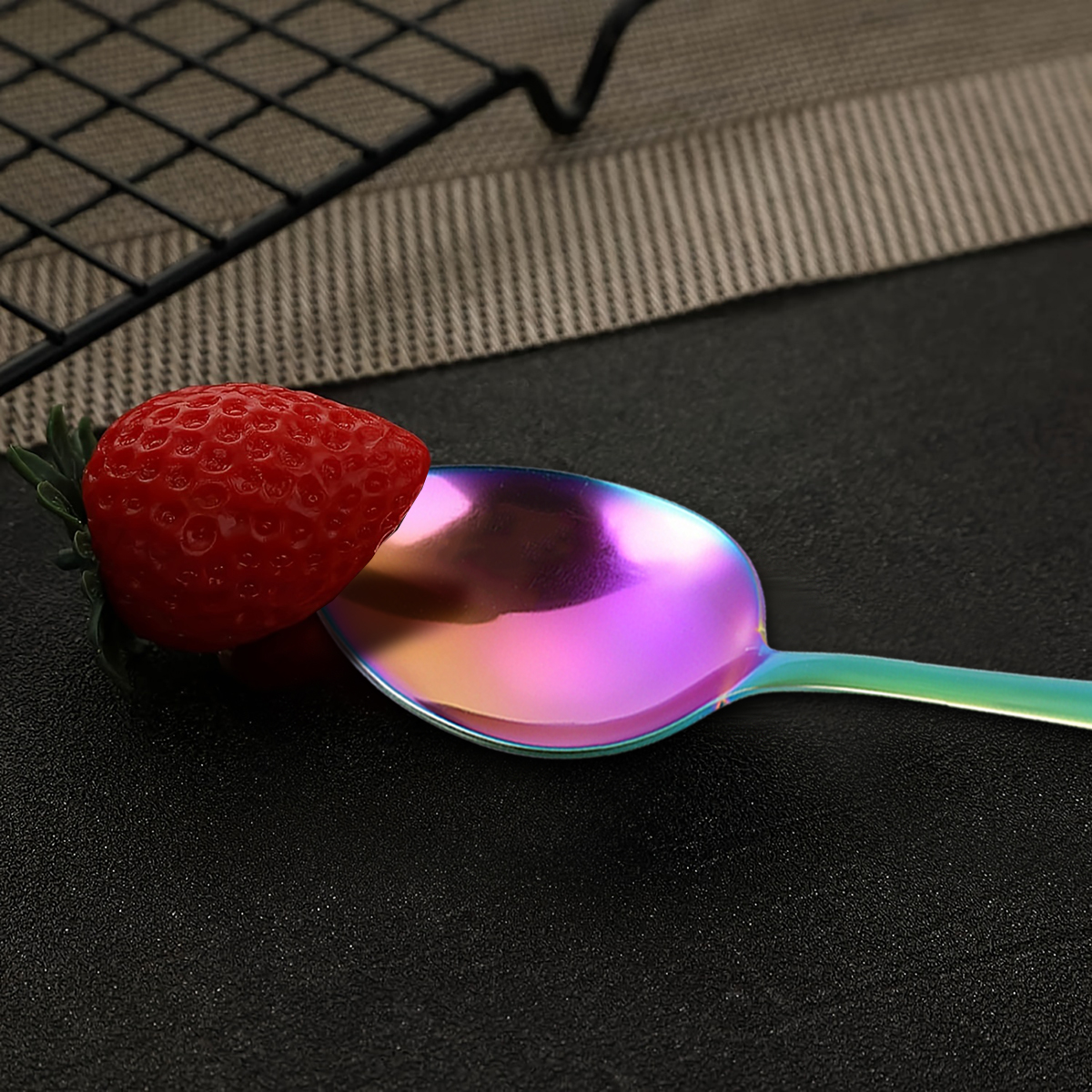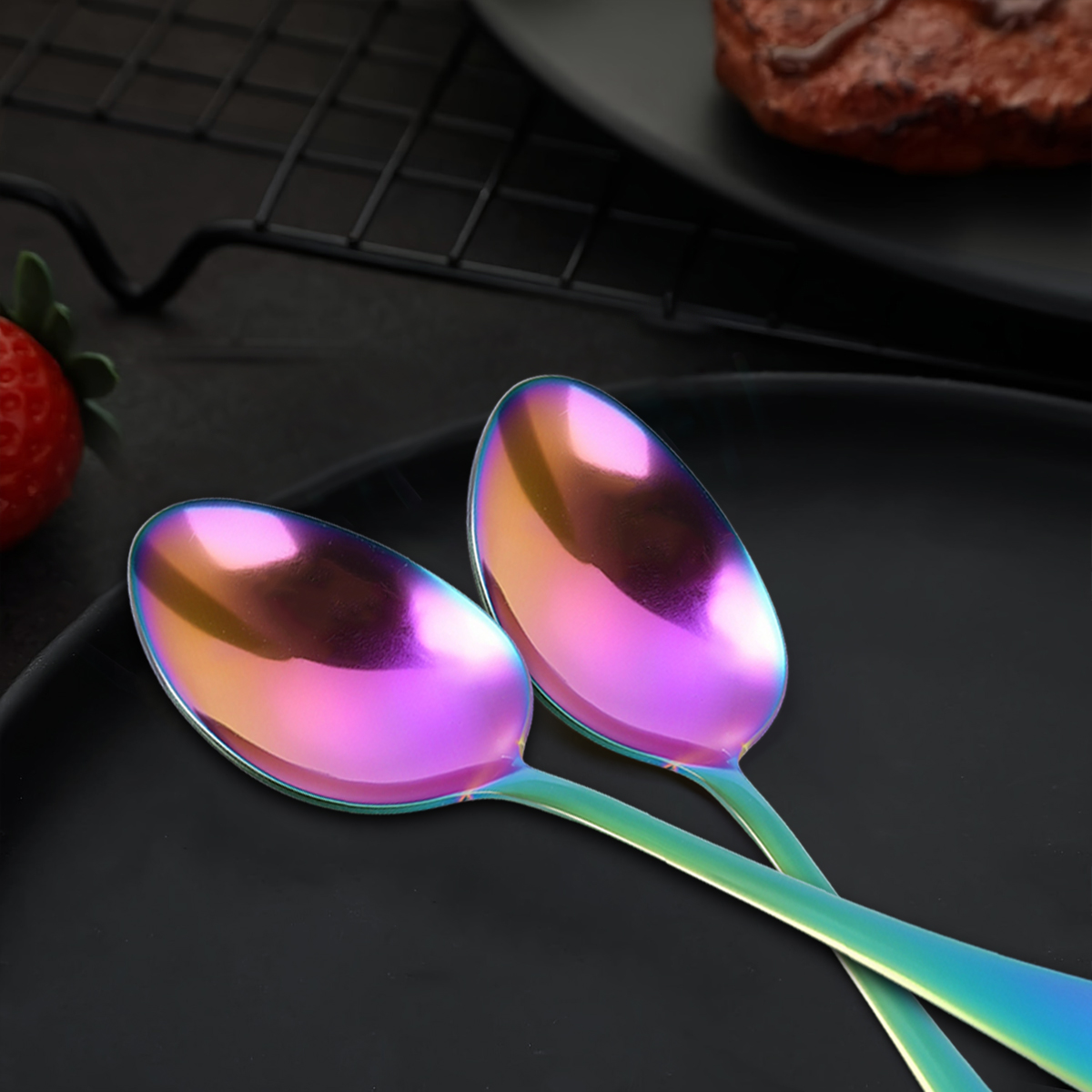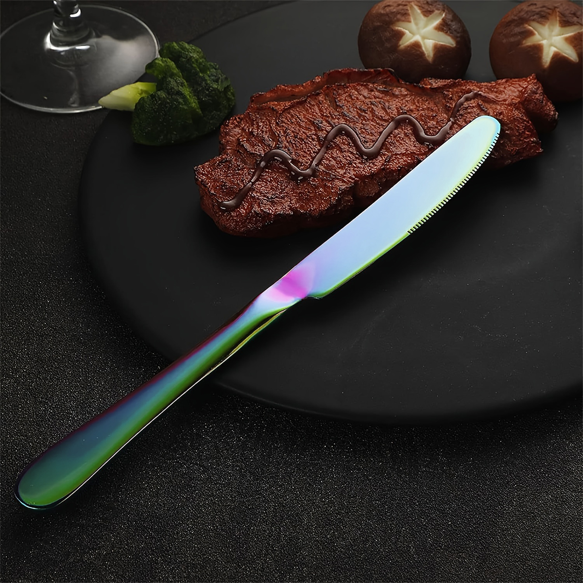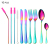 这款 10 件套幻彩餐具,色彩绚丽夺目,如梦幻光谱般迷人。包含刀、叉、勺,满足用餐基本需求,还有吸管及配套刷,增添多样使用场景。均采用优质不锈钢材质,食品级安全标准,耐腐蚀、耐磨且经久耐用。手柄符合人体工学,握感舒适。吸管配防尘盖,清洁刷方便清理。无论是日常用餐、户外野餐还是派对聚会,都是兼具实用与颜值的绝佳选择。