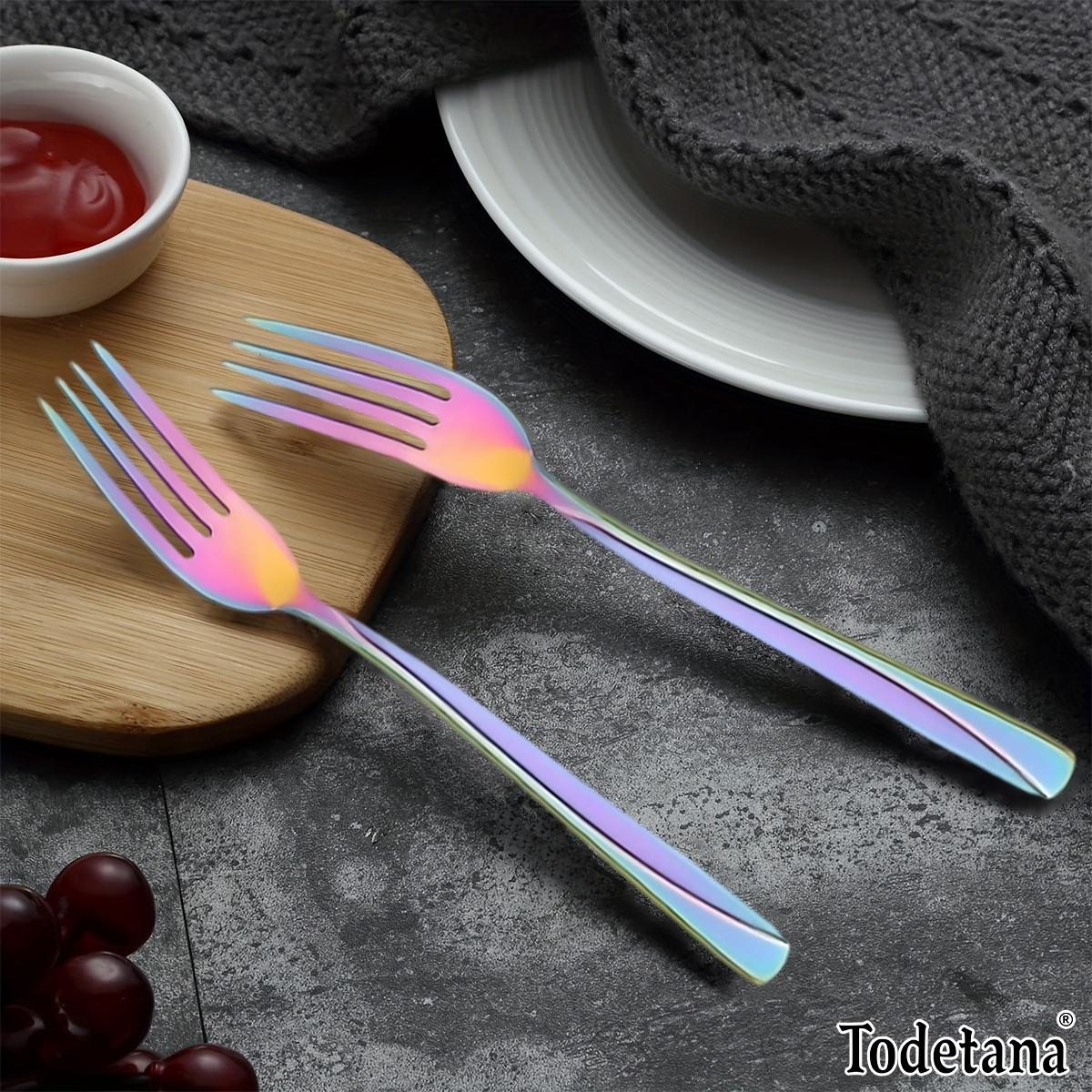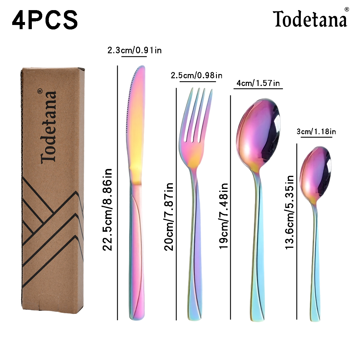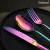 Square handle stainless steel tableware; Four-piece set of stainless steel tableware; Rainbow-colored tableware; European-style tableware suit; Household tableware suit; Western tableware; High-value tableware; Simple style tableware; Four-piece set of knife and fork spoon; Western-style knife and fork spoon combination