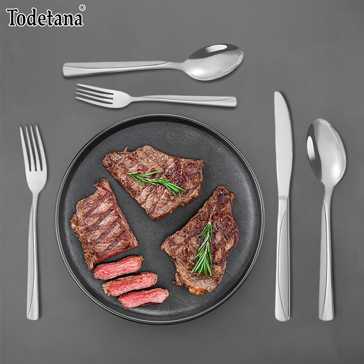 方柄不锈钢餐具;不锈钢餐具四件套;银色喷砂餐具;欧式餐具套装;家用餐具套装;西餐餐具;高颜值餐具;简约风餐具;刀叉勺四件套;西餐刀叉勺组合