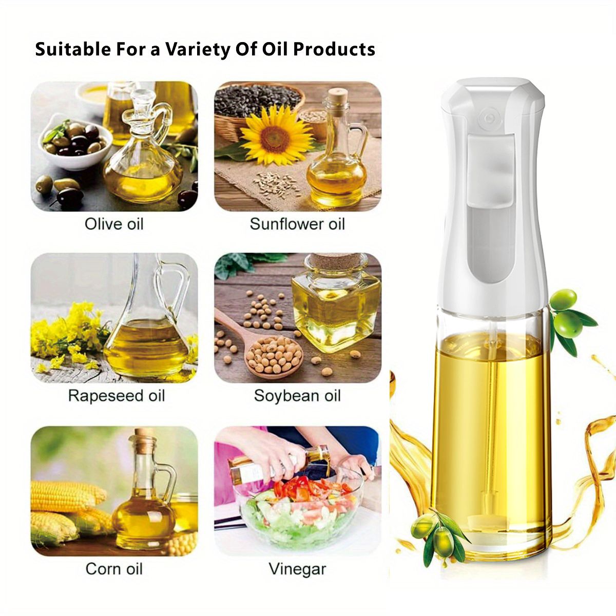 这款烹饪用的油喷雾瓶兼具喷油和倒油的便利性,适用于沙拉调味、煎锅烹饪、烘烤、烧烤等多种食品制作过程。