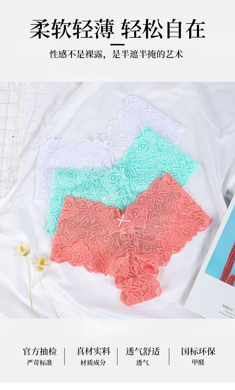 性感透气中腰内裤,花卉蕾丝边设计,舒适日常三角裤,柔软弹性面料,优雅内衣套装,轻盈时尚,适合日常穿搭与特殊场合
